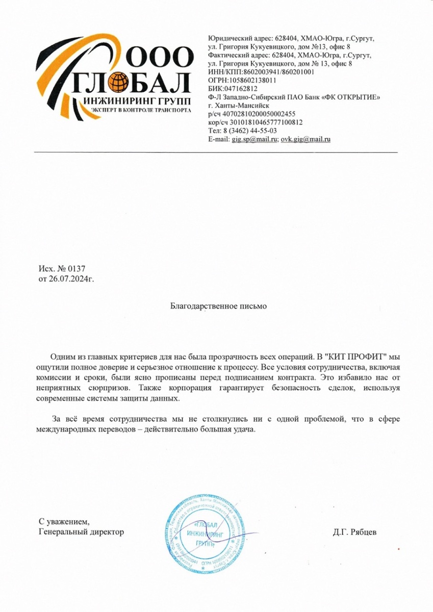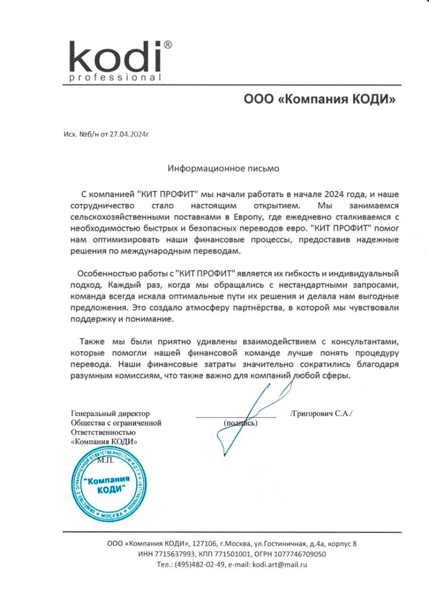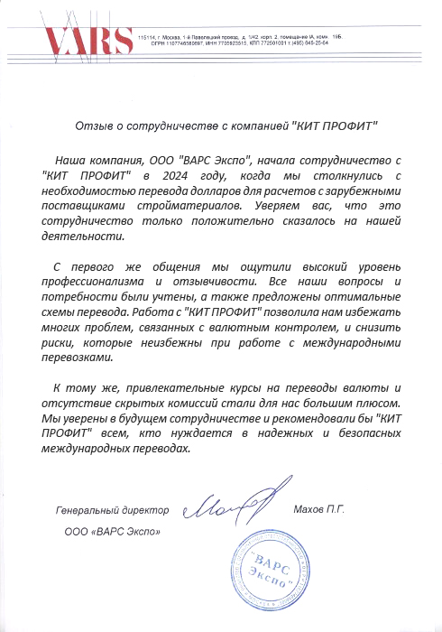 Наши специалисты консультируют вас по валютному контролю, когда вы отправляете деньги в пользу нашей компании.